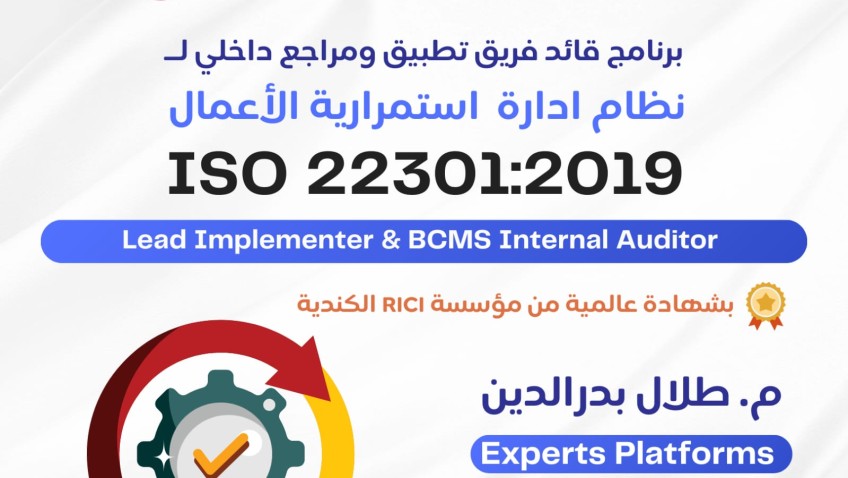 قائد فريق التطبيق والمدقق الداخلي لنظام إدارة استمرارية الأعمال ايزو 22301